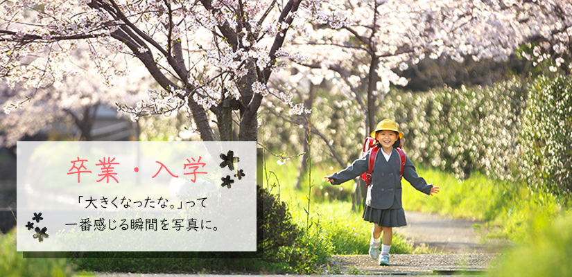 今からたくさん思い出が詰まるぴかぴかのランドセル、まだちょっと大きい制服。これから新しい環境でたくさんのことを学び、さらに成長していくお子さんたち。その門出を家族みんなできっちり写真に残しませんか!