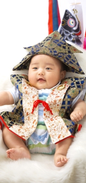 初節句の衣装もあります!山田写真館には初節句の衣装もあります!!ミニ鯉のぼりと写るととてもかわいいですよ!  |